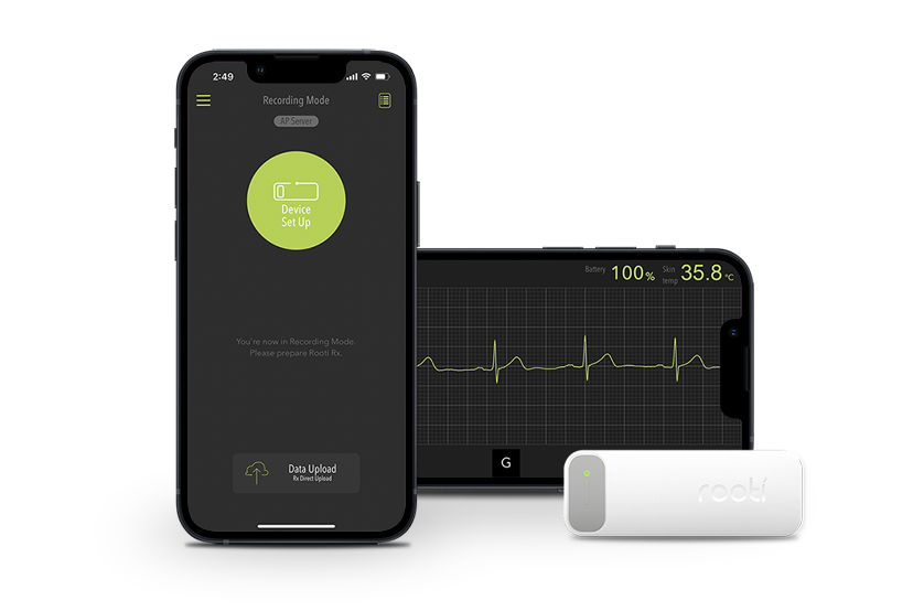 We exclusively use the Rooti Rx wireless waterproof 7 day Holter monitoring system which is a compact wearable device worn non-obtrusively on the chest.
